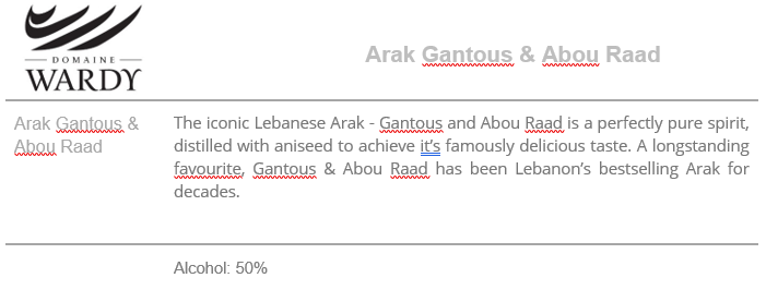 The iconic Lebanese Arak Gantous & Abou Raad - Alcohol 50% - Volume 500ml